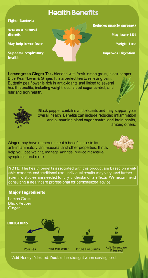 Lemongrass ginger tea: A perfect balance of citrus and spice for a refreshing experience! Wild ginger blends with Eastern Himalayan Lemongrass, the loyal companion.